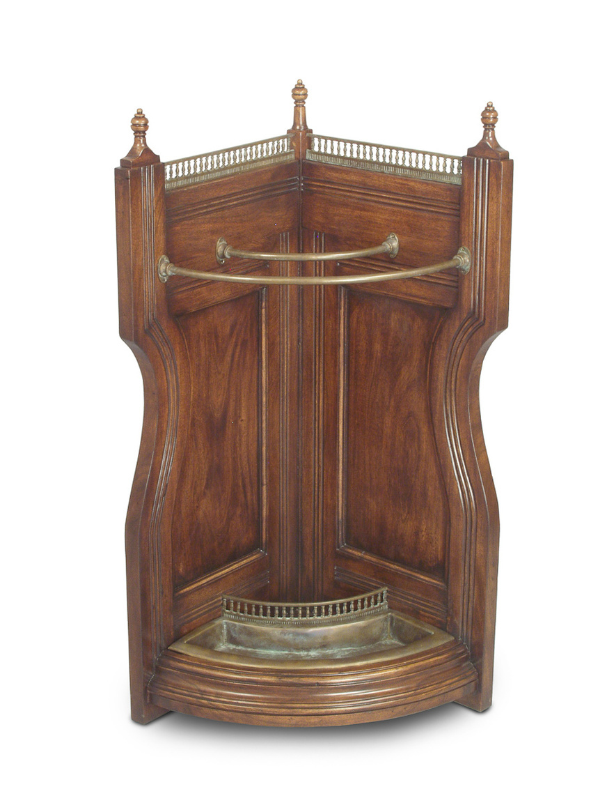 Walnut Corner Umbrella Stand W/Bronze