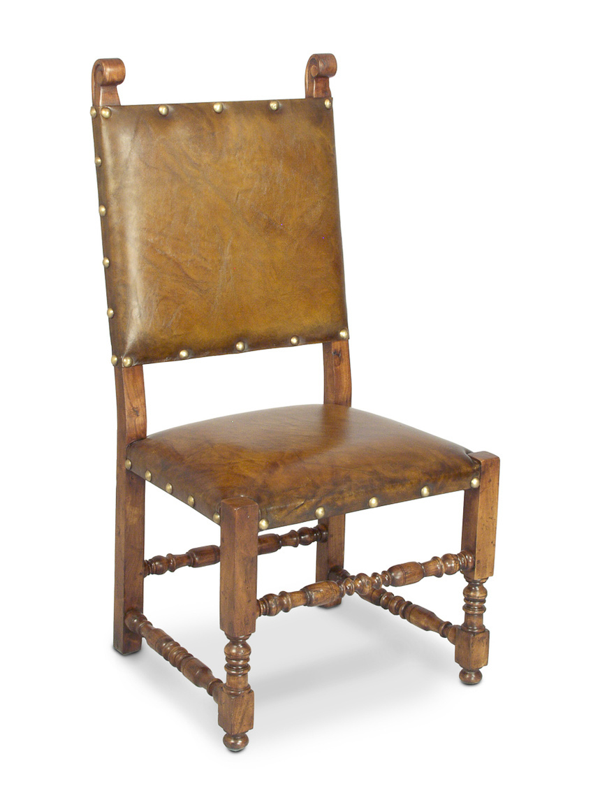 Walnut & Leather Side Chair W/Brass Stud