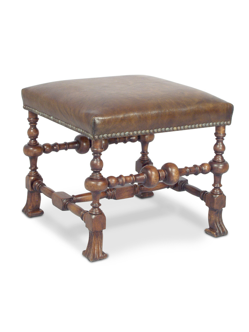 Walnut Stool W/Leather & Brass Studs