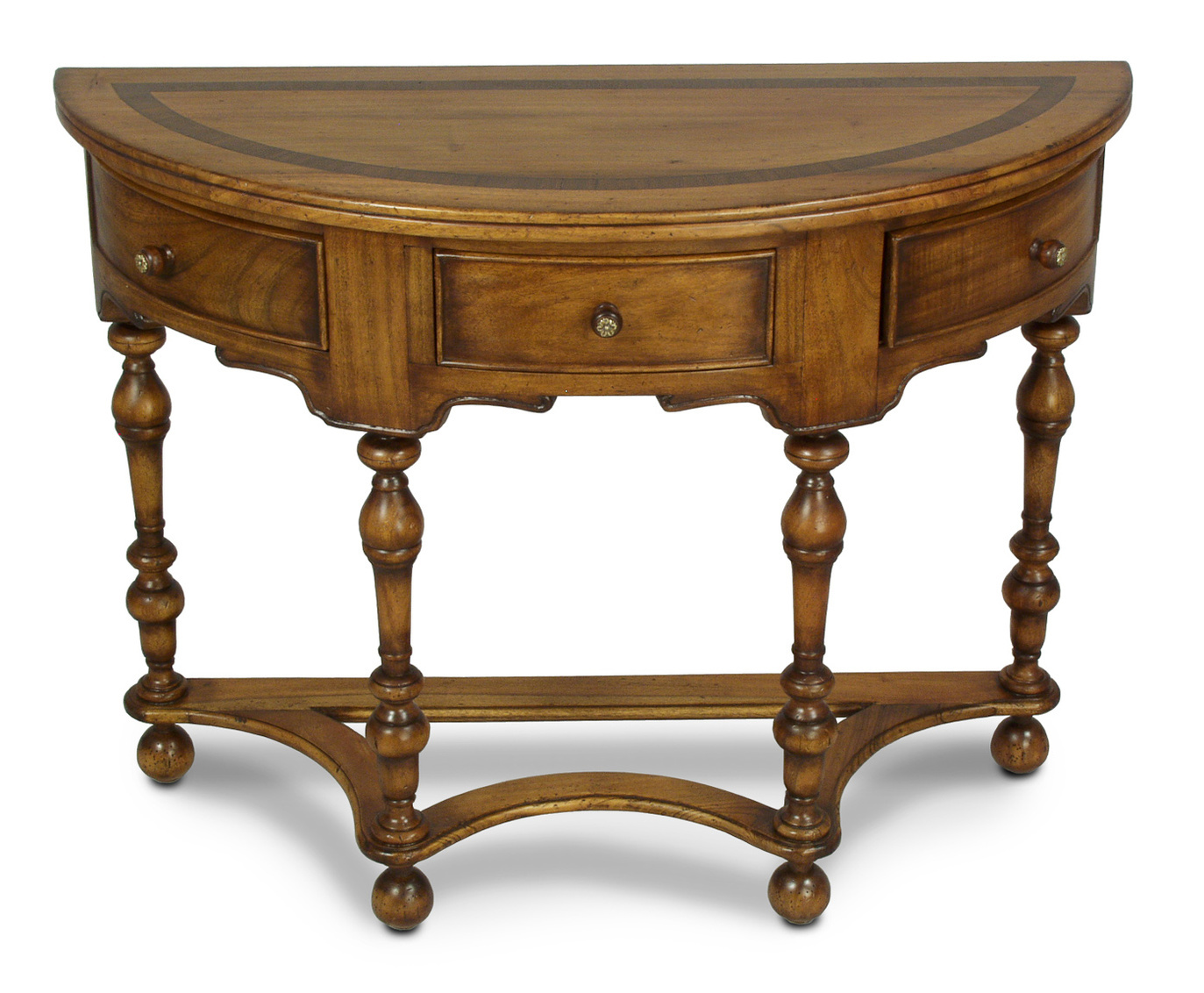 Walnut Demilune Console W/Three Drawers