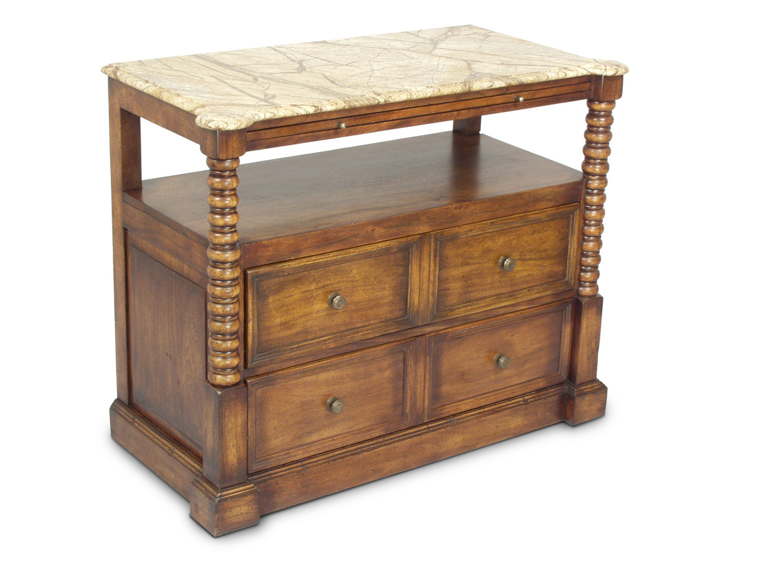 Walnut 2 Tier Nightstand W/Marble Top