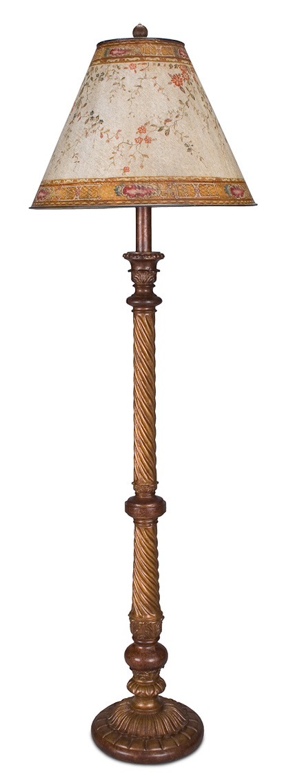 Spiral Column Floor Lamp W/Painted Shade