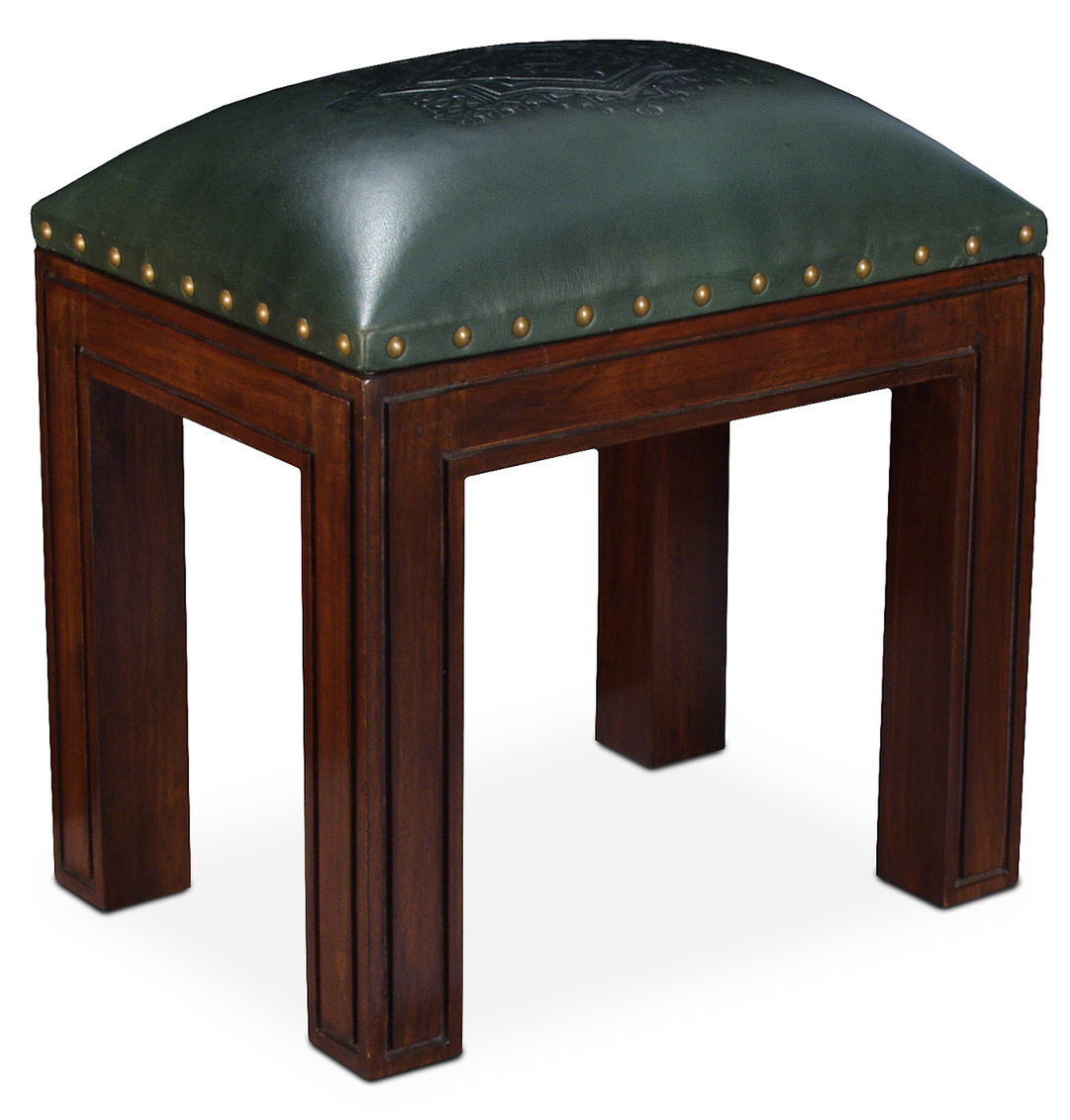 Square Leather Stool, Green