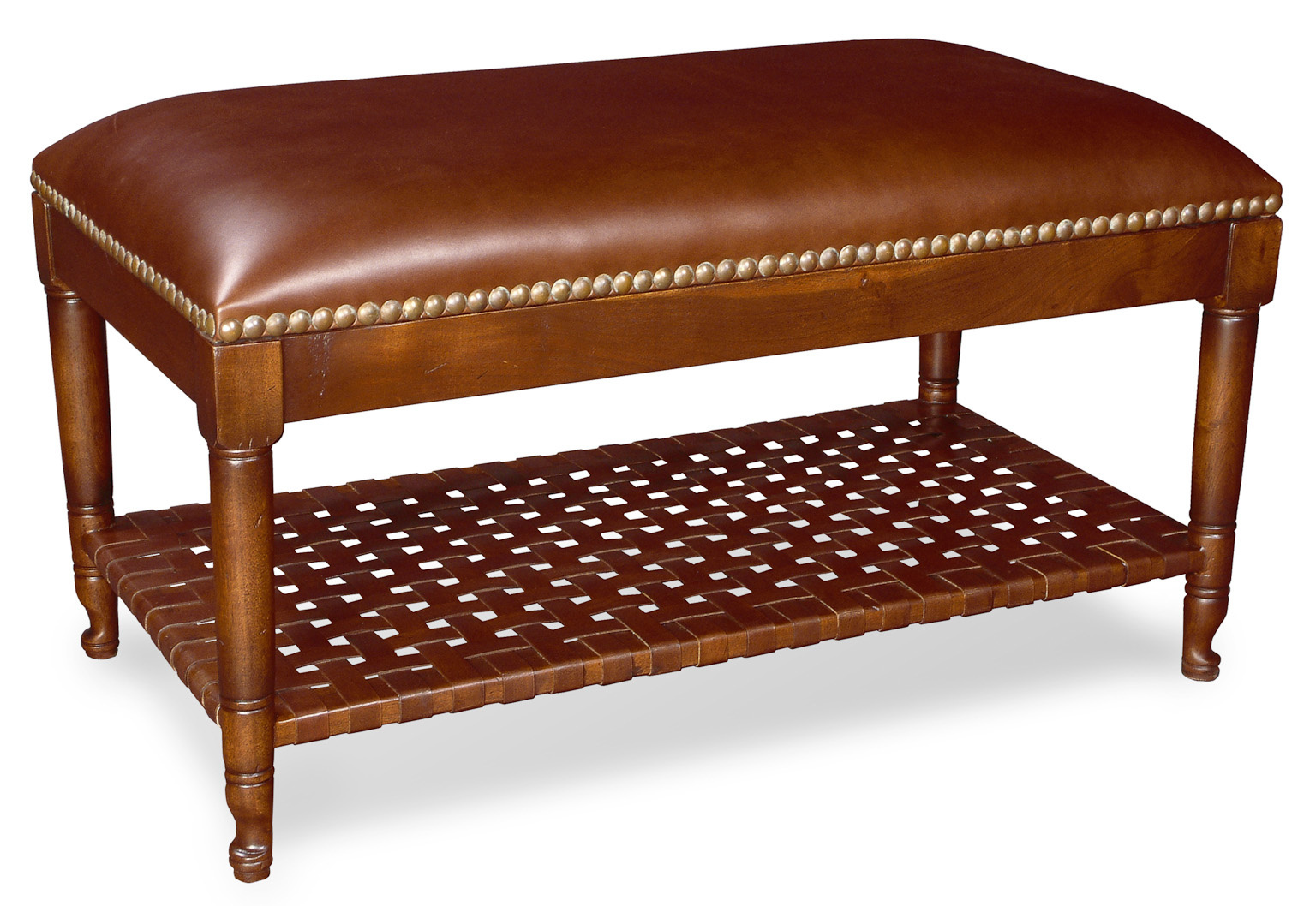 Leather Bench With Woven Shelf